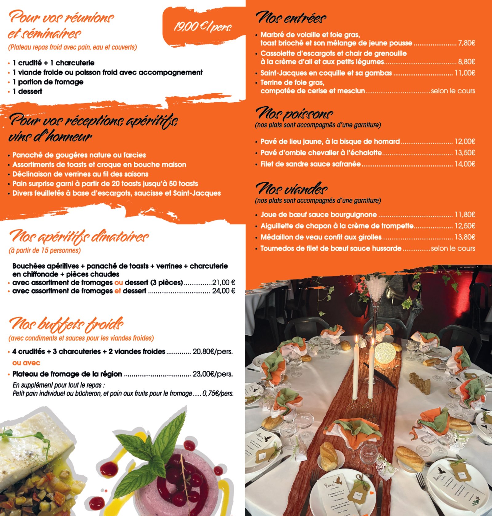 Nos menus sont préparés en adéquation avec les saisons et les évènements, afin que vous ayez toujours les meilleurs produits dans votre assiette.